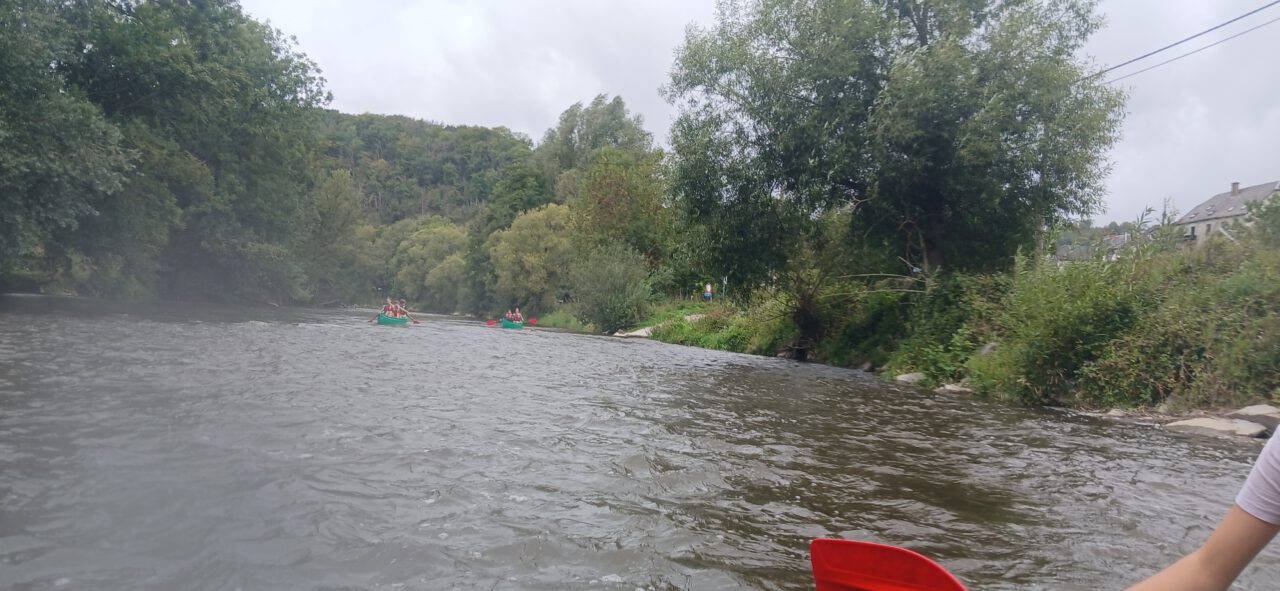 Net als bij het raften in Panama, maakte iedereen elkaar nat hier. En iedereen botste tegen elkaar op. Toen wij met onze kano tegen die van meneer Kooij (NLT, Natuurkunde) en meneer Groennou (ook nog nooit van gehoord tot gisteren), kregen we een soort ‘ruzie’. Als wij weer langs elkaar kwamen, probeerse we elkaar nat te maken en zei meneer Kooij de hele tijd:”Daar heb je die vervelende kinderen weer.” Dat was dus heel leuk. Tijdens het kanoën waren er ook veel stroomversnellingen, waardoor je weer wat sneller ging.