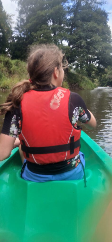 Vandaag was de enige volle dag. We begonnen met kanoën. Ik zat met Elisa en Willemijn in de kano en dat was heel gezellig. We begonnen niet heel goed, maar hoe verder we kwamen hoe meer we er samen voor konden zorgen dat we niet vast kwamen te zitten. We waren ook nog maar een paar meter onderweg en we zaten al muurvast. Elisa en ik stapte dus uit om ons eruit te trekken. Voor de rest hebben we niet zo vastgezeten, dus we waren wel goed bezig.