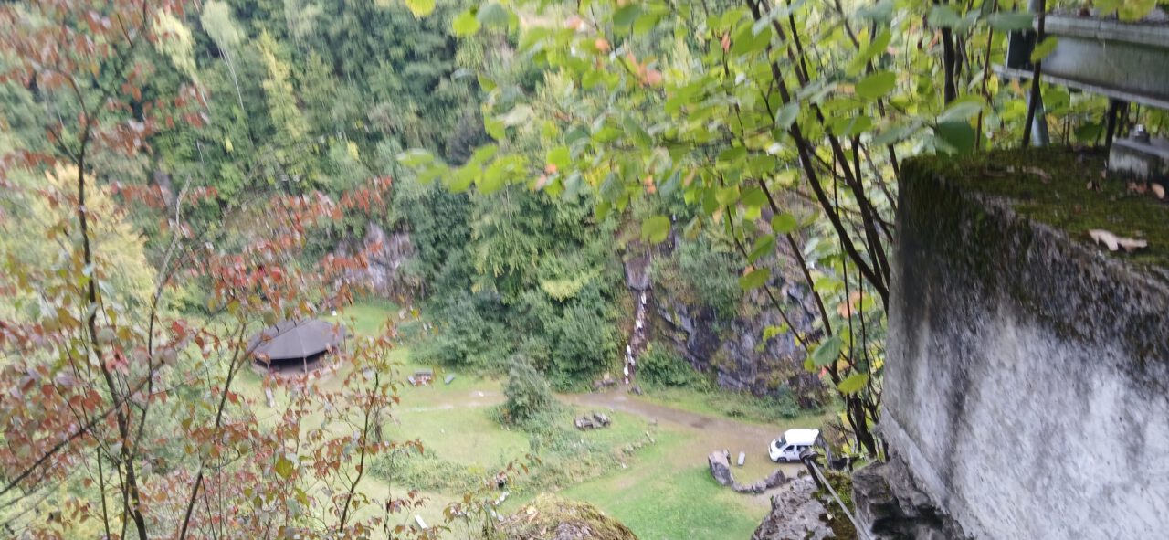 Voordat we konden beginnen met klimmen moesten we door een hele donkere grot van 450 meter. We moesten in de polonaise erdoor heen zonder zaklampen. Een paar mensen kregen een stok om de muur bij te houden, zodat we nergens tegen op zouden lopen. Op de terugweg moesten we er weer doorheen, maar konden we gelukkig met zaklampen er doorheen.